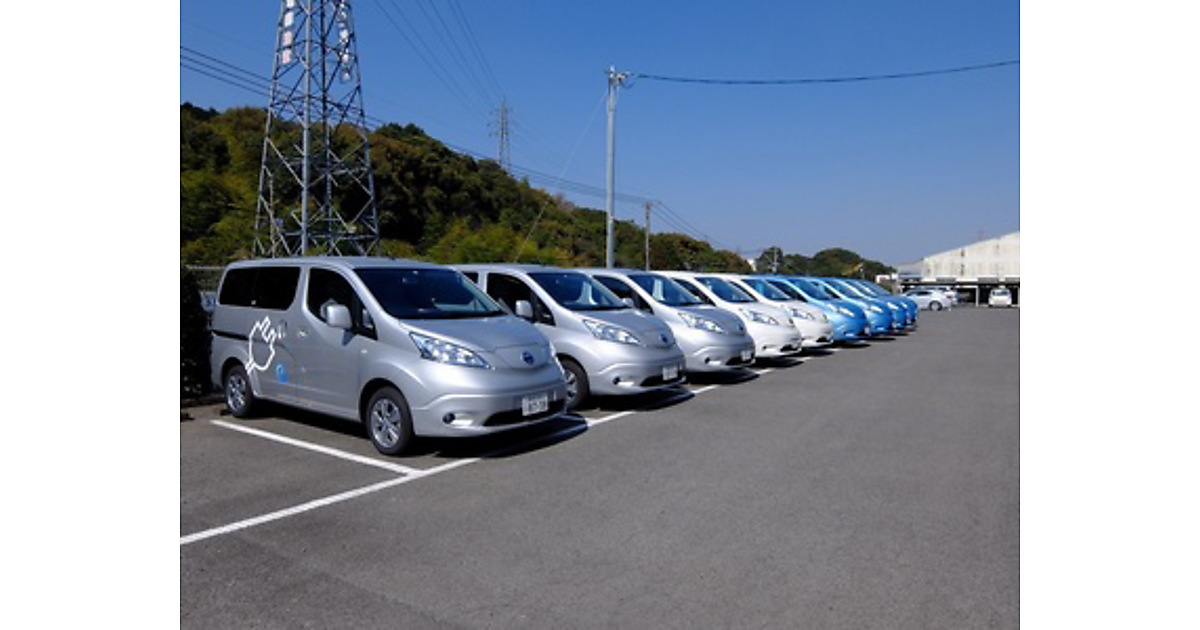 今回使用する、コンテナを利用した定置型リチウムイオン蓄電池の定格容量は576kWh(実効容量はおよそ400kWh)。加えて日産自動車の商用EV「e-NV200」10台と、充電スタンド10台を導入した。e-NV200は蓄電容量24kWhのリチウムイオン蓄電池を内蔵している。10台のEVは従業員の通勤などに利用し、駐車場に停車しているときは充電スタンドに接続し、遠隔制御で充電時間帯を制御する。この仕組みで10台のEVを1つの大きな蓄電池として活用する。