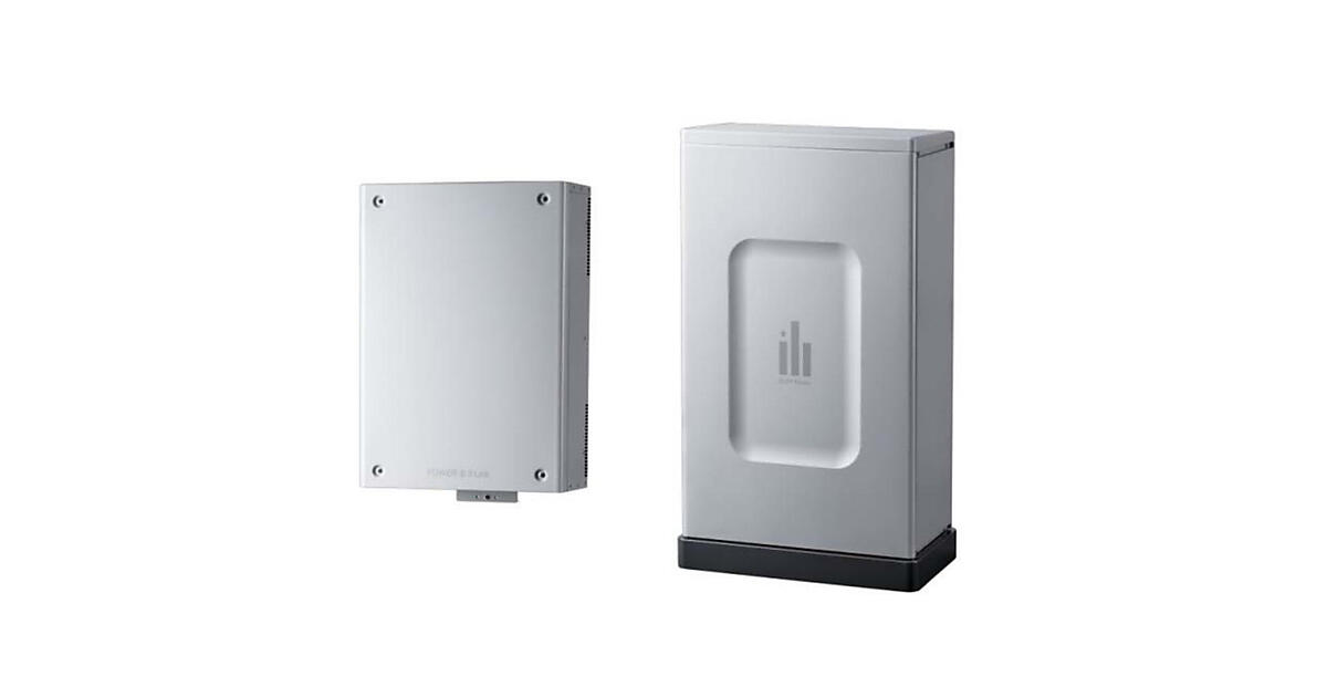図 エリーパワーの定置型蓄電池「POWER iE5 Link」。左側がパワーコンディショナーで、右側が定置型蓄電池ユニット