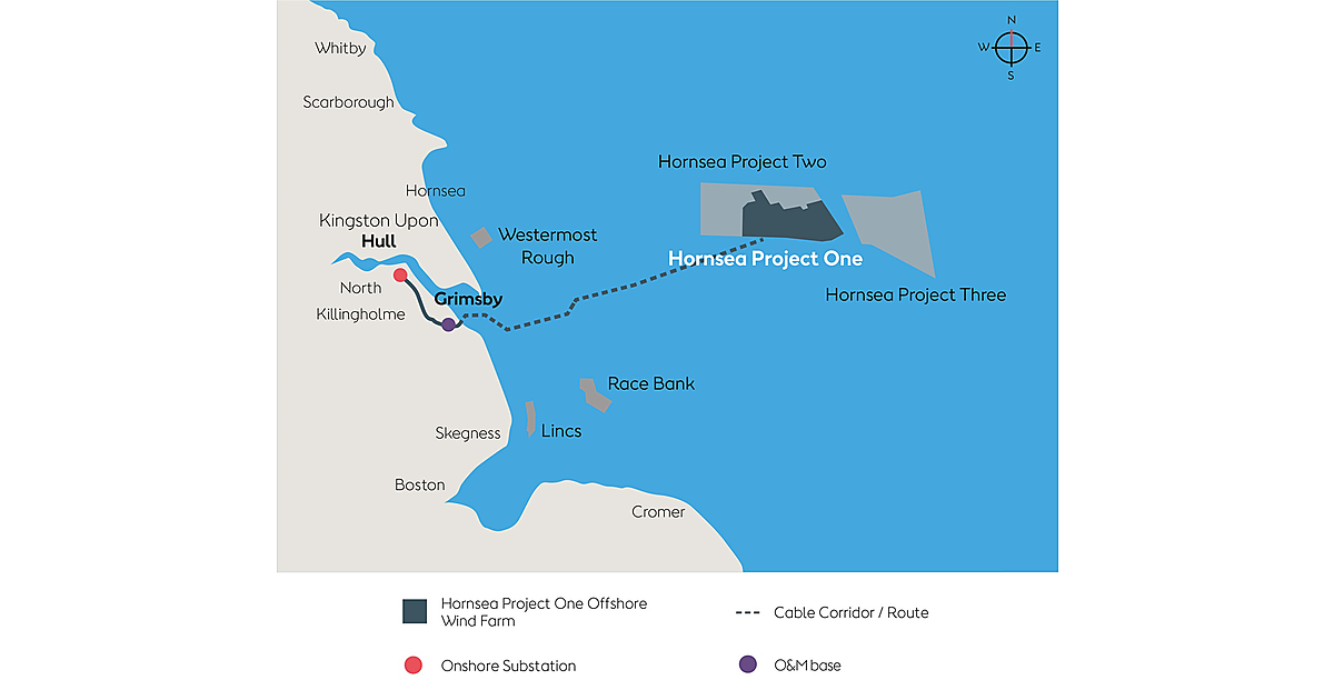 Hornsea Project Oneでは、407km2の海域に出力7MWの風力発電設備を並べる。それぞれの発電設備の全高は190mに達するという。最大出力は1.2GW(120万kW)。出力が1GW(100万kW)を超える洋上風力発電所はこれが世界初。年間の発電量はイギリスの一般世帯の電力消費量100万件以上になる。