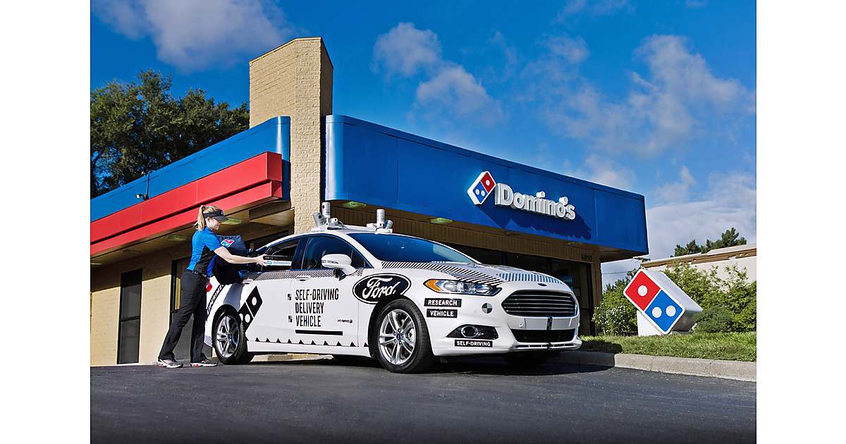 図 Domino's Pizzaの商品を運ぶ、Ford Motorの自動運転車