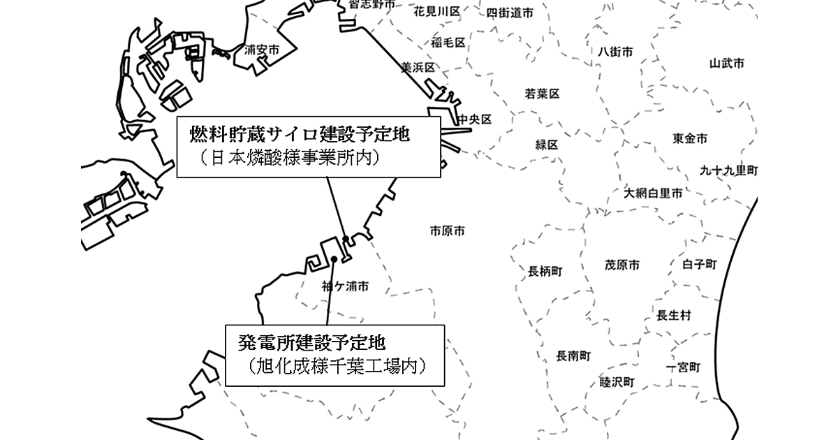 発電所の建設予定地は千葉県袖ケ浦市の東京湾岸。旭化成千葉工場の敷地内に発電所を建設し、近隣にある日本燐酸の事業所敷地内に燃料を貯蔵するサイロを建設する。発電所の出力は75MW(7万5000kW)。韓国Doosan Heavy Industries & Construction(斗山重工業)の循環流動床ボイラーとスチームタービン発電機を組み合わせた構成となる。燃料は木質ペレットを使用する。2022年7月に運転開始の予定だ。