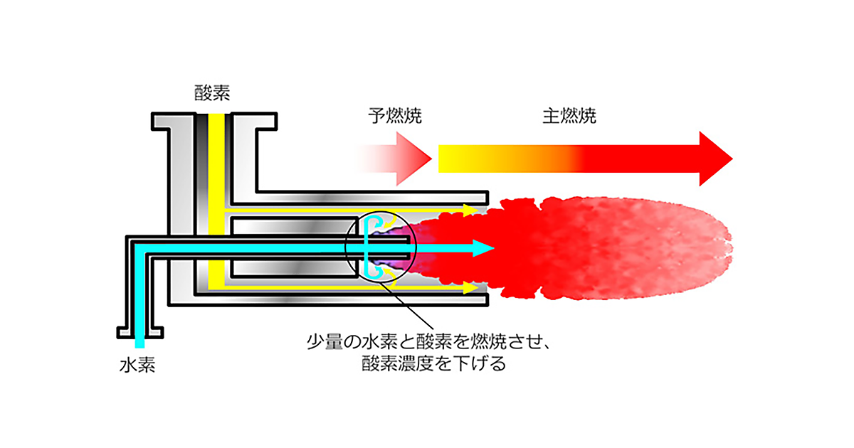 図 少量の水素と酸素を事前に燃焼させることで酸素濃度を抑える