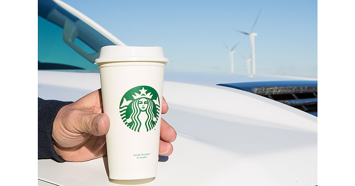 Starbucksは、再生可能エネルギーのみで事業を運営することを目指す世界的な企業連合「RE100」に参加しており、店舗などの施設で消費する電力を、再生可能エネルギー由来のものに転換する活動を続けている。