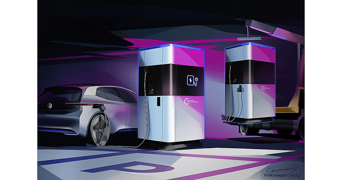 Volkswagen、蓄電池内蔵の「置いてつなぐだけで使える」EV用急速充電器を発表