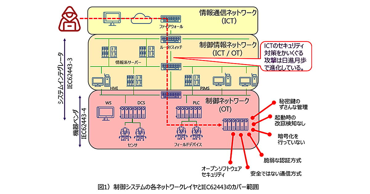 図 制御システムの各ネットワークレイヤとIEC 62443のカバー範囲